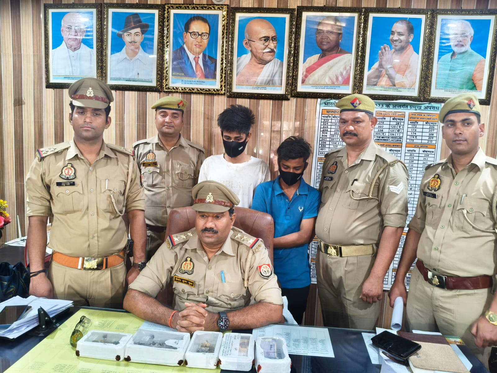 पटवन गली मोहल्ला निवासी तंबाकू व्यवसाई बृजेश चंद्र शर्मा 16 अप्रैल को अपने परिवार के साथ पुत्र के घर जन्मदिन पार्टी में गए थे। इसी दौरान चोरों ने छत के रास्ते घर में प्रवेश कर अलमारी से नकदी और जेवरात पार कर दिए थे। पीड़ित की तहरीर पर पुलिस ने अज्ञात चोरों के खिलाफ मुकदमा दर्ज कर जांच शुरू की थी। घटना के बाद शहर में हड़कंप मच गया। प्रभारी निरीक्षक विनोद कुमार शुक्ल व उपनिरीक्षक अंकुर भाटी की टीम ने मुखबिर की सटीक सूचना पर कार्रवाई की। पुलिस ने साईं मंदिर के पास पटवन गली से सौरभ उर्फ अंशू और कार्तिक तंतवार को गिरफ्तार कर लिया।
