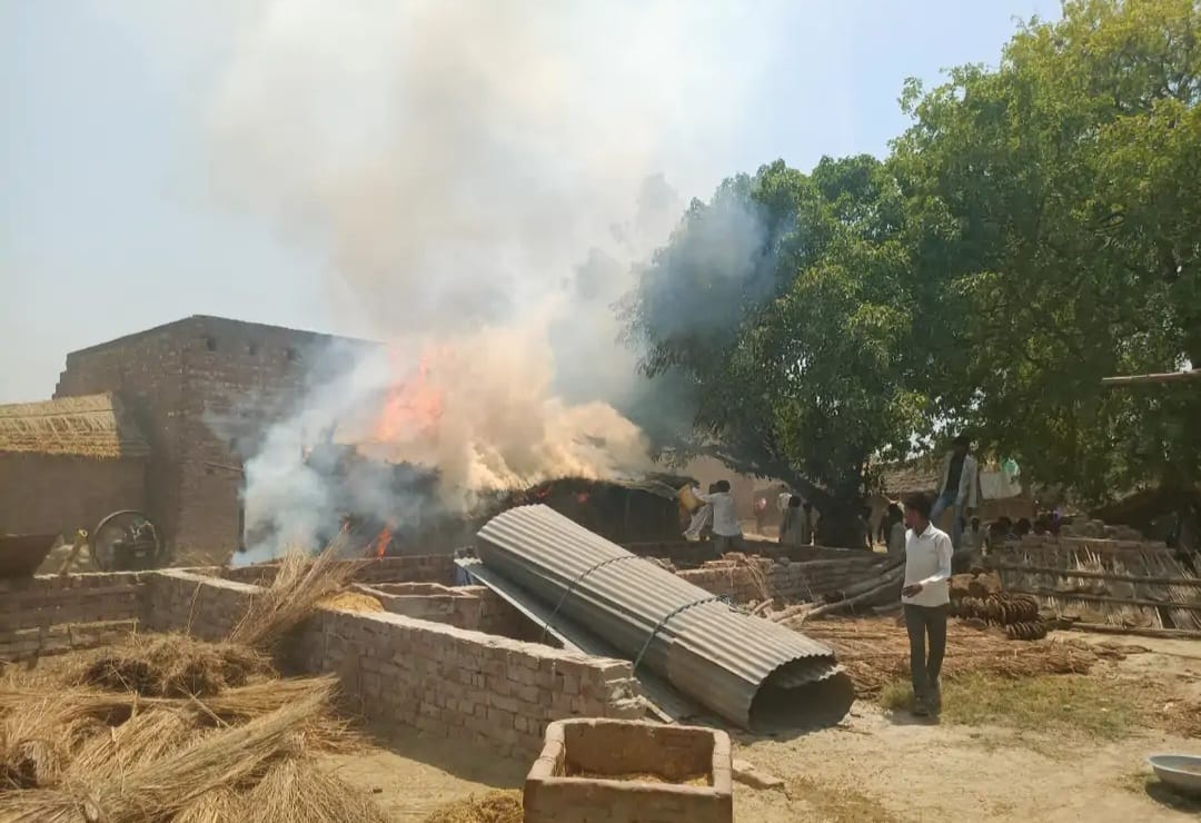 संदिग्ध परिस्थितियों में इकलहरा में झोपड़ी में लगी भीषण आग, अनाज व भूसा जलकर हुआ खाक