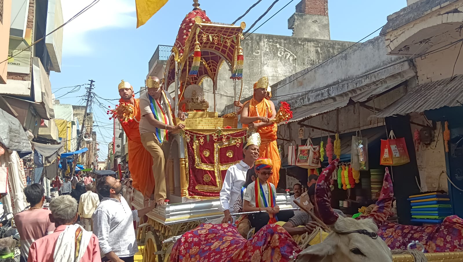 शोभायात्रा में भगवान महावीर का सुसज्जित रथ मुख्य आकर्षण रहा। भक्तिमय वातावरण के बीच संतोष जैन रथ के सारथी बने, जबकि प्रभाकर जैन ने खब्बास की भूमिका निभाई। रथ पर कुबेर के रूप में नरेश जैन और इंद्र के रूप में अमन व दीपू धर्म की ध्वजा फहराते हुए चल रहे थे। यात्रा के दौरान जैन समाज के महिला, पुरुष और बच्चे श्वेत वस्त्रों में सुसज्जित होकर भगवान महावीर के बताए मार्ग पर चलने का संकल्प ले रहे थे। श्रद्धालु जय बोलो महावीर की और अहिंसा परमो धर्म के गगनभेदी नारे लगा रहे थे। इस मौके पर समिति के अध्यक्ष कपिल जैन, महामंत्री आशीष जैन, कोषाध्यक्ष अमन जैन के अलावा विपिन जैन, अनिल जैन, प्रदीप जैन, सुधीर जैन, संजय जैन, डॉ. प्रदीप जैन, प्रद्युम्न जैन, पीयूष जैन, नरेन्द्र जैन, कमलेश जैन, हर्षवर्धन, अंकित, अखिलेश, धरणेन्द्र, राहुल और एंजिल जैन, ज्ञायक जैन नीटू, सुधा जैन, शिल्पी जैन रश्मि, अनीता, गुंजन, ममता, रेखा, शशि, अंकिता, सुनीता, प्रगति और आयुषी जैन मौजूद रही।