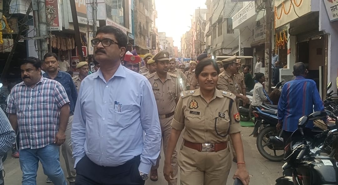 इस दौरान एसडीएम अतुल कुमार सिंह, सीओ राजेश कुमार द्विवेदी, कोतवाली प्रभारी मोहम्मद कामिल सहित भारी पुलिस फोर्स मौजूद रही। पैदल मार्च श्यामागेट, लोहाई बाजार, बजरिया जैसे भीड़भाड़ वाले मार्गों से गुजरा।अधिकारियों ने दुकानदारों और नागरिकों से शांति और सौहार्दपूर्वक त्योहार मनाने की अपील की।