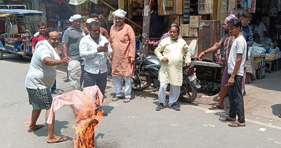 -प्रदर्शन के दौरान अखिल भारतीय हिंदू महासभा ने फूंका जेई का पुतला