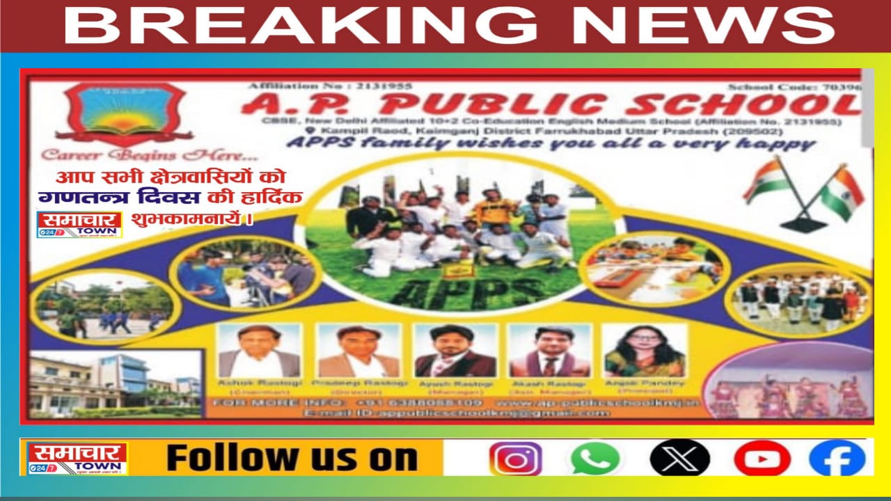 Farrukhabad:- ए.पी पब्लिक स्कूल कायमगंज की ओर से सभी क्षेत्रवासियों को गणतंत्र दिवस की हार्दिक शुभकामनाएं। Post navigation Farrukhabad: डॉ. शोभित कुमार अधीक्षक सीएचसी कायमगंज की ओर से सभी क्षेत्रवासियों को गणतंत्र दिवस की हार्दिक शुभकामनाएं।Farrukhabad: राज श्री मेडिकल स्टोर की ओर से सभी क्षेत्रवासियों को गणतंत्र दिवस की हार्दिक शुभकामनाएं।
