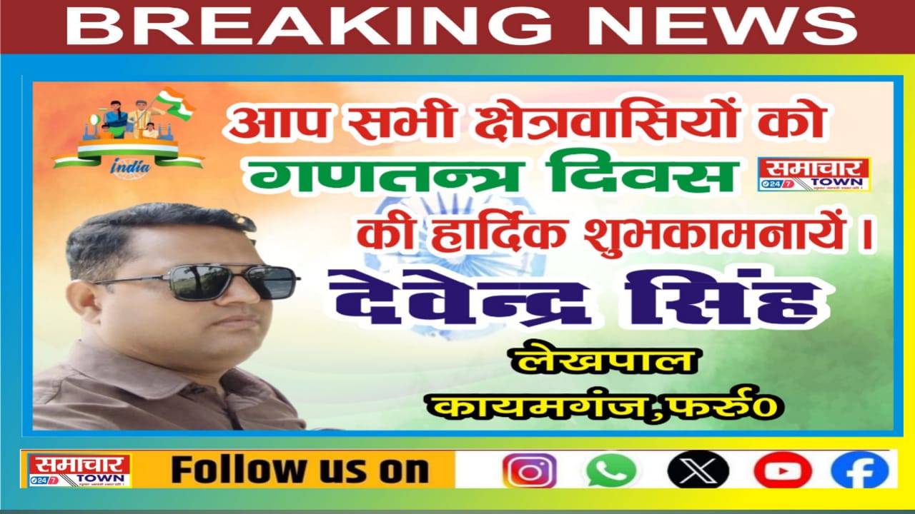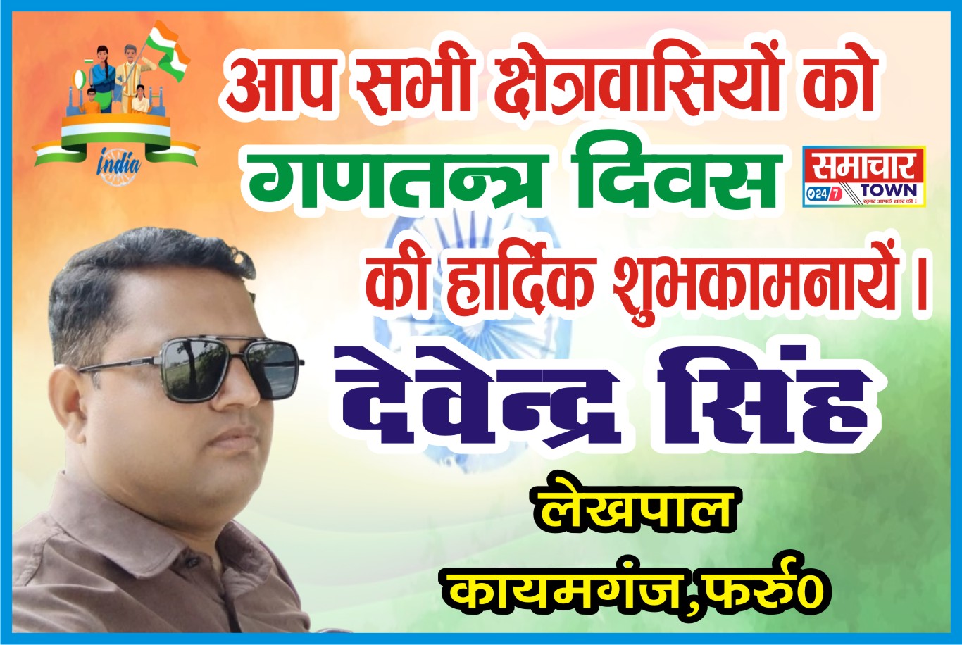 Farrukhabad:- देवेन्द्र सिंह लेखपाल की ओर से सभी क्षेत्रवासियों को गणतंत्र दिवस की हार्दिक शुभकामनाएं। Post navigation Farrukhabad: आकाश भदौरिया तहसील मंत्री लेखपाल संघ की ओर से सभी क्षेत्रवासियों को गणतंत्र दिवस की हार्दिक शुभकामनाएं।Farrukhabad: एन.सी अग्रवाल मेडिकल स्टोर की ओर से सभी क्षेत्रवासियों को गणतंत्र दिवस की हार्दिक शुभकामनाएं।