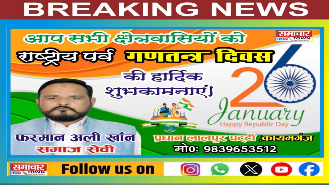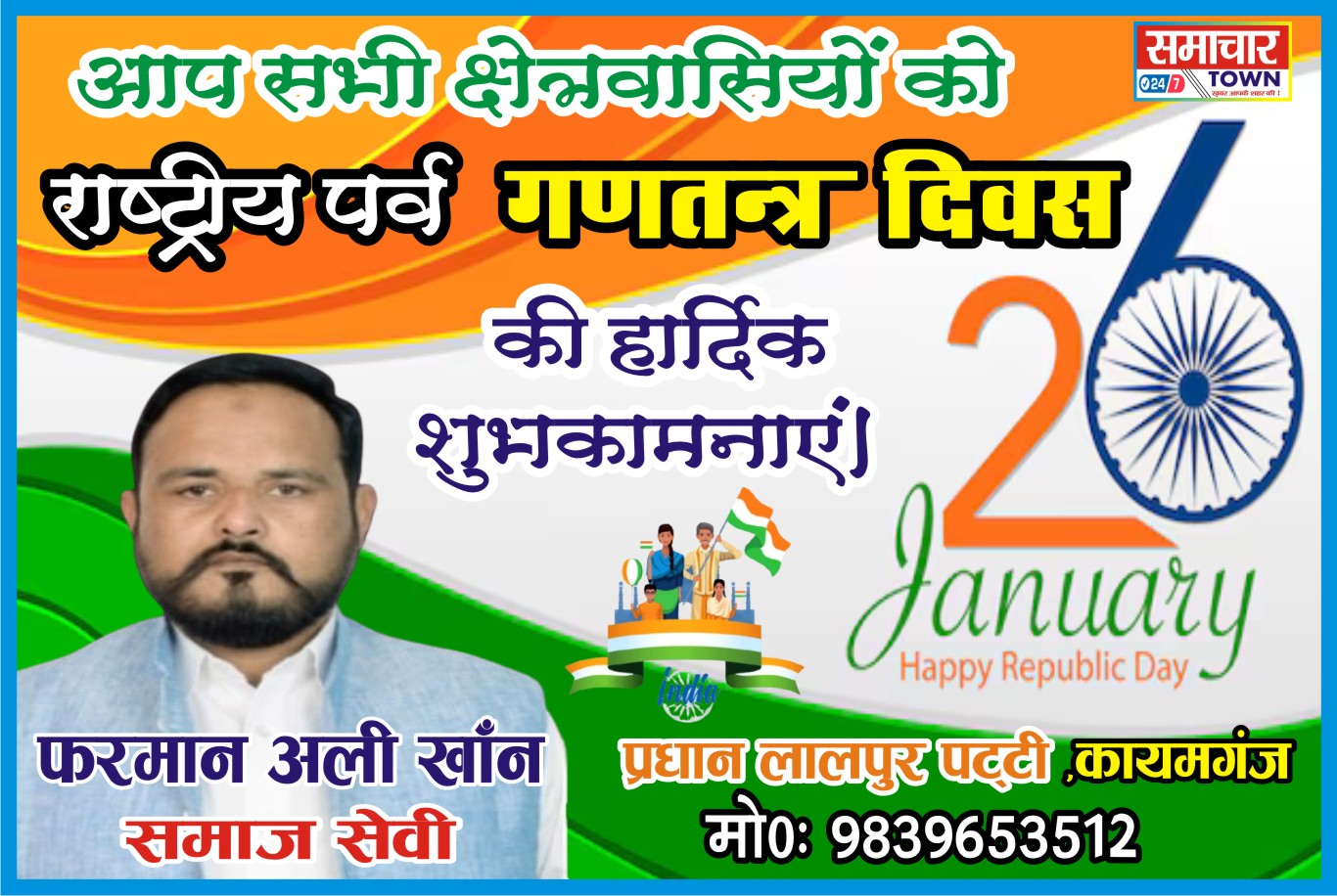 Farrukhabad: फरमान अली खां प्रधान लालपुर पट्टी की ओर से सभी क्षेत्रवासियों को गणतंत्र दिवस की हार्दिक शुभकामनाएं।