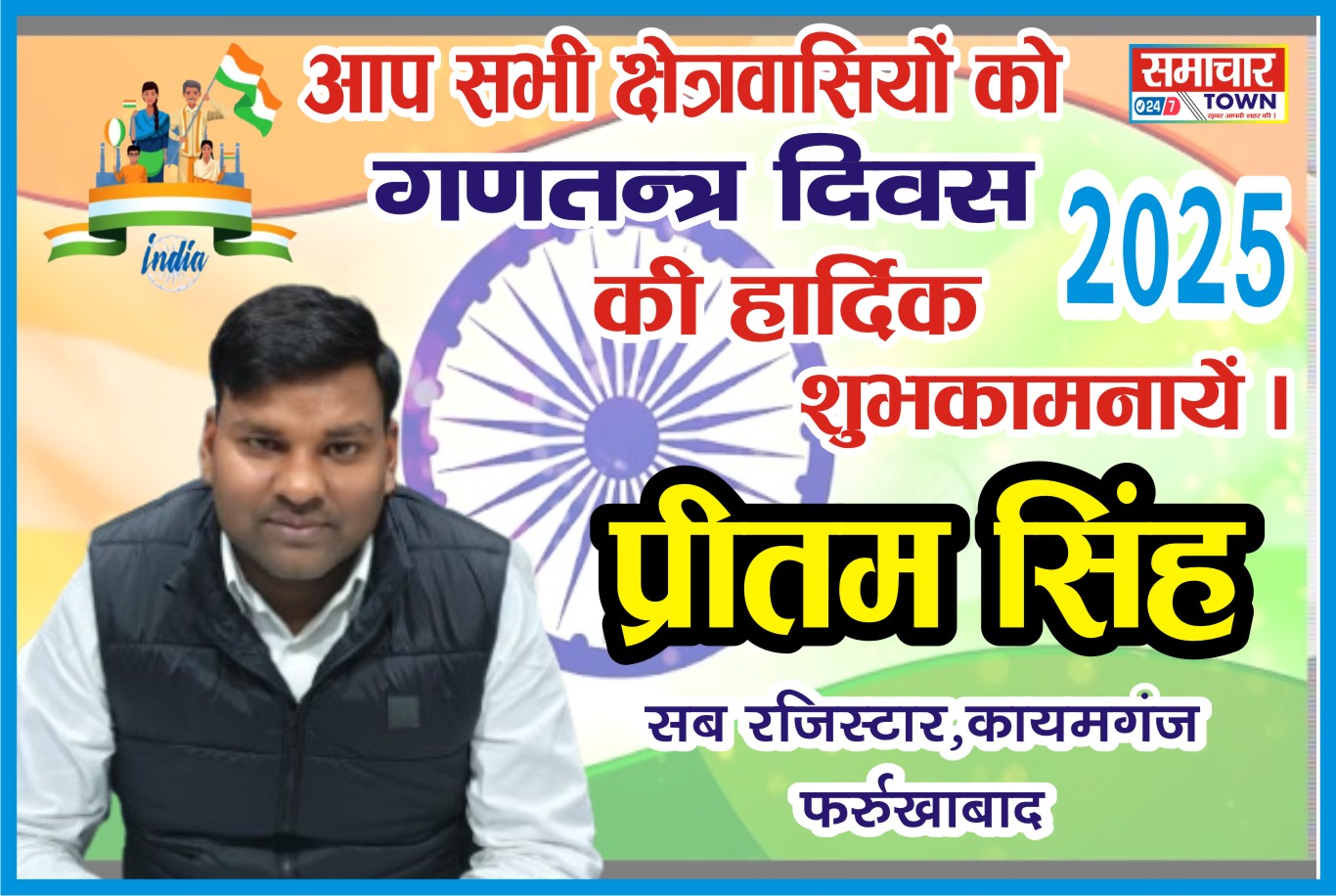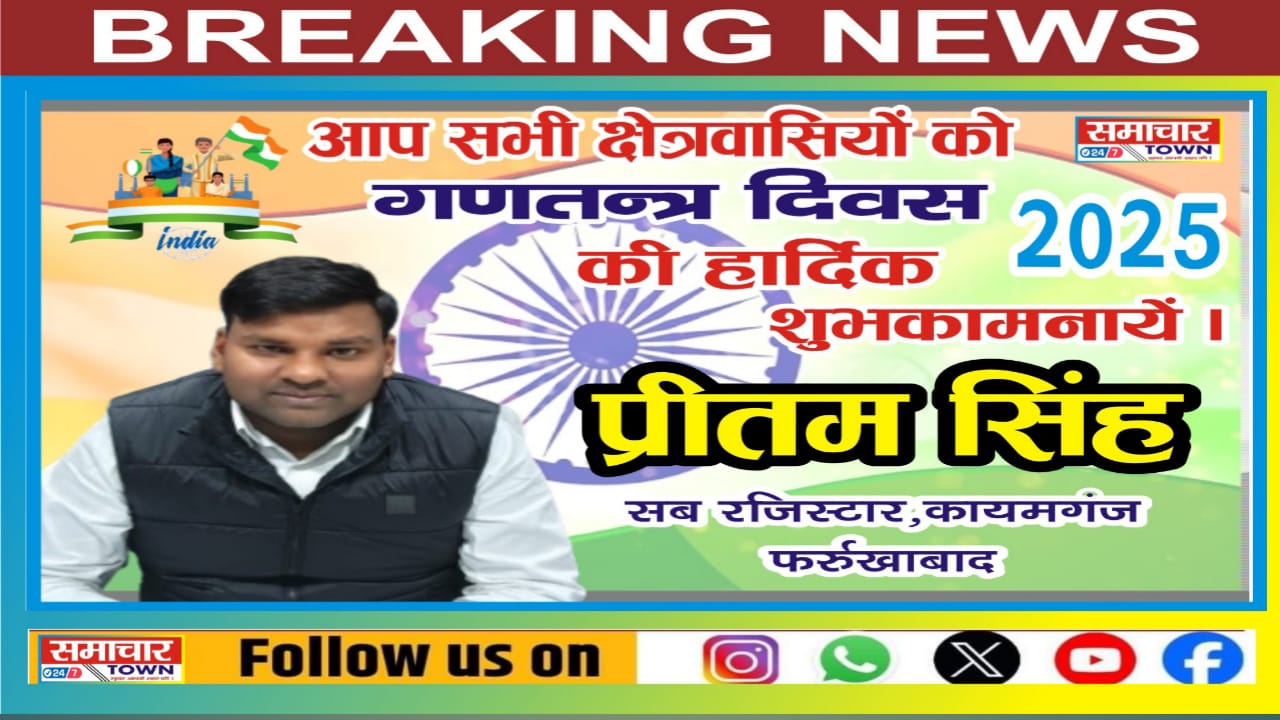 Farrukhabad:- प्रीतम सिंह सब रजिस्ट्रार की ओर से सभी क्षेत्रवासियों को गणतंत्र दिवस की हार्दिक शुभकामनाएं। Post navigation Farrukhabad: सचिन मिश्रा जिलाध्यक्ष लेखपाल संघ की ओर से सभी क्षेत्रवासियों को गणतंत्र दिवस की हार्दिक शुभकामनाएं।Farrukhabad: सुधांशु अग्निहोत्री लेखपाल की ओर से सभी क्षेत्रवासियों को गणतंत्र दिवस की हार्दिक शुभकामनाएं।