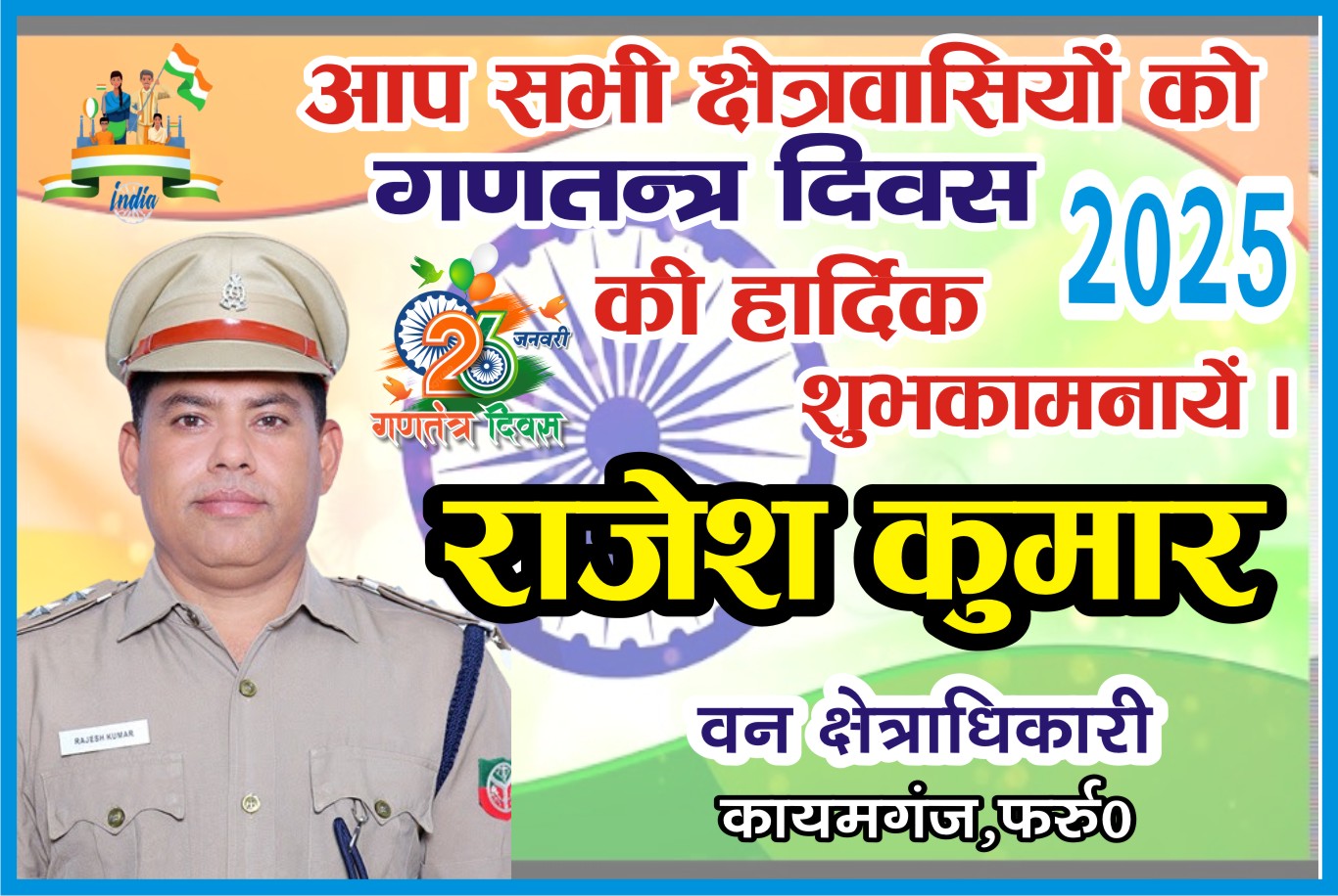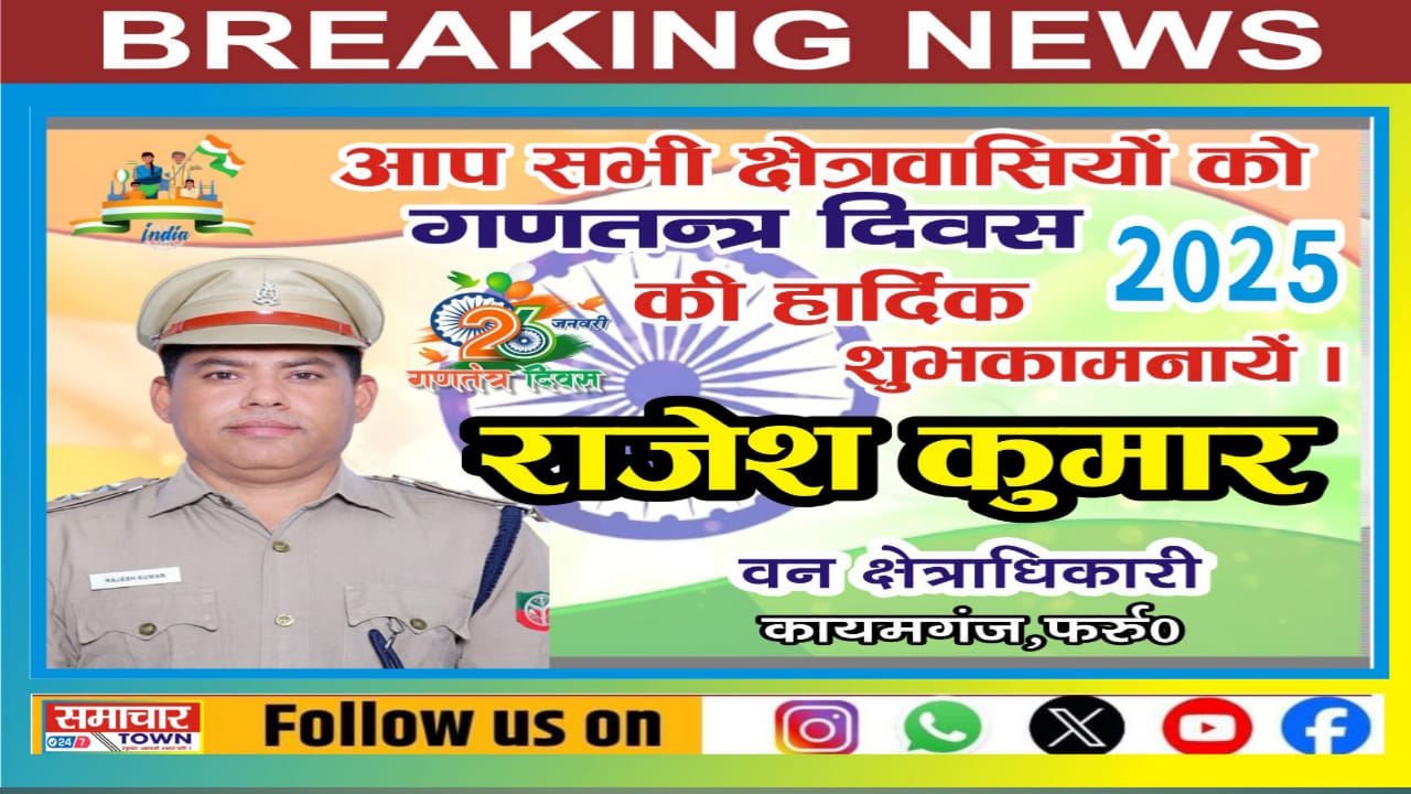 Farrukhabad: राजेश कुमार वन क्षेत्राधिकारी की ओर से सभी क्षेत्रवासियों को गणतंत्र दिवस की हार्दिक शुभकामनाएं।