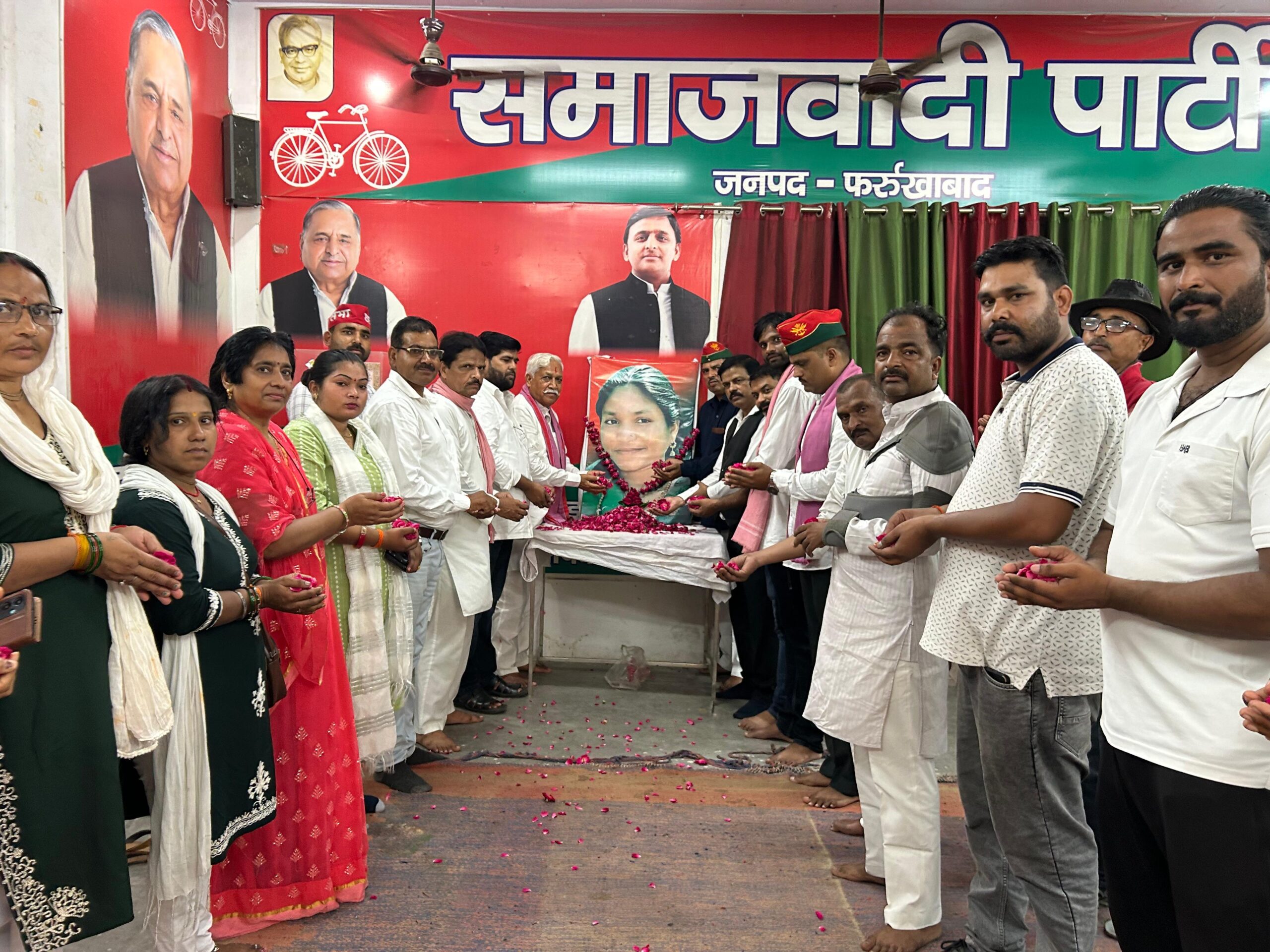 शुक्रवार को जनपद फर्रुखाबाद स्थित समाजवादी पार्टी कार्यालय में जिला अध्यक्ष चंद्रपाल सिंह के नेतृत्व में पूर्व सांसद फूलन देवी की पुण्यतिथि पर श्रद्धांजलि सभा का आयोजन किया गया। आपको बता दे कि श्रद्धांजलि सभा के दौरान आधा सैकड़ा से भी ज्यादा समाजवादी पार्टी के कार्यकर्ताओं ने उन्हें श्रद्धा सुमन अर्पित किए।