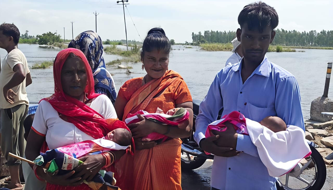 जनपद फर्रुखाबाद में बाढ़ की स्थिति भयानक बनी हुई है। जनपद का अधिकतर तराई इलाका जलमग्न हो चुका है। वहीं बाढ़ के चलते आम जनजीवन अस्त व्यस्त है। लोगों को मूलभूत सुविधाओं के लिए काफी दिक्कत का सामना करना पड़ रहा है आपको बता दें की ताजा मामला कायमगंज कोतवाली क्षेत्र के गांव कुआं खेड़ा वजीर आलम के मजार चौघडा मैं देखने को मिला। जहां गांव के निवासी कुंवर पाल की पत्नी सीता देवी को तीन दिन पहले प्रसव पीड़ा होने पर परिजनों ने उसे फर्रुखाबाद के एक निजी अस्पताल में भर्ती कराया था। जहां महिला ने दो पुत्र व एक पुत्री को जन्म दिया। एक साथ तीन नवजातों के पैदा होने की सूचना पर परिजनों में खुशी की लहर दौड़ गई।