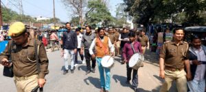 फोटो परिचय तहसील से मुनादी कुर्की के लिए ढोल-नगाड़ों के साथ जाता पुलिस प्रशासन मौजूद भारी फोर्स