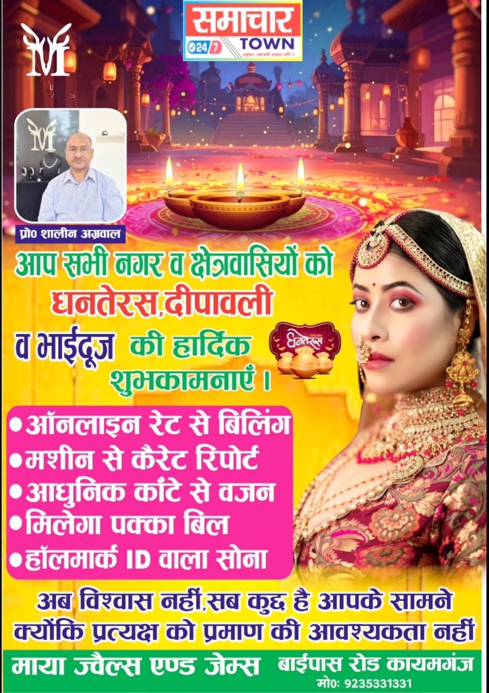 Kaimganj: आप सभी नगर व क्षेत्रवासियों को धनतेरस, दीपावली व भैयादूज की हार्दिक शुभकामनाएं।