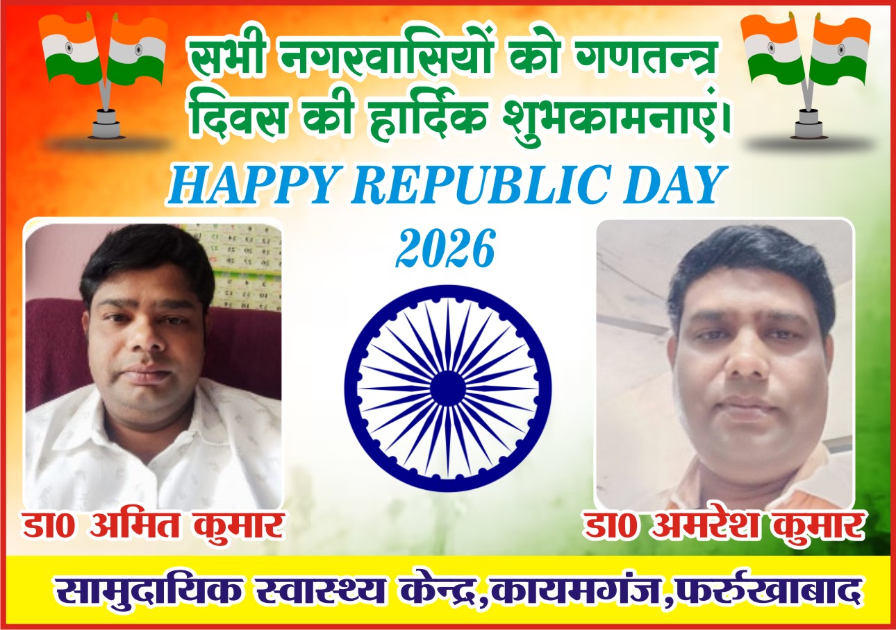 आप सभी नगरवासियों व क्षेत्रवासियों को गणतंत्र दिवस की हार्दिक शुभकामनाएं।