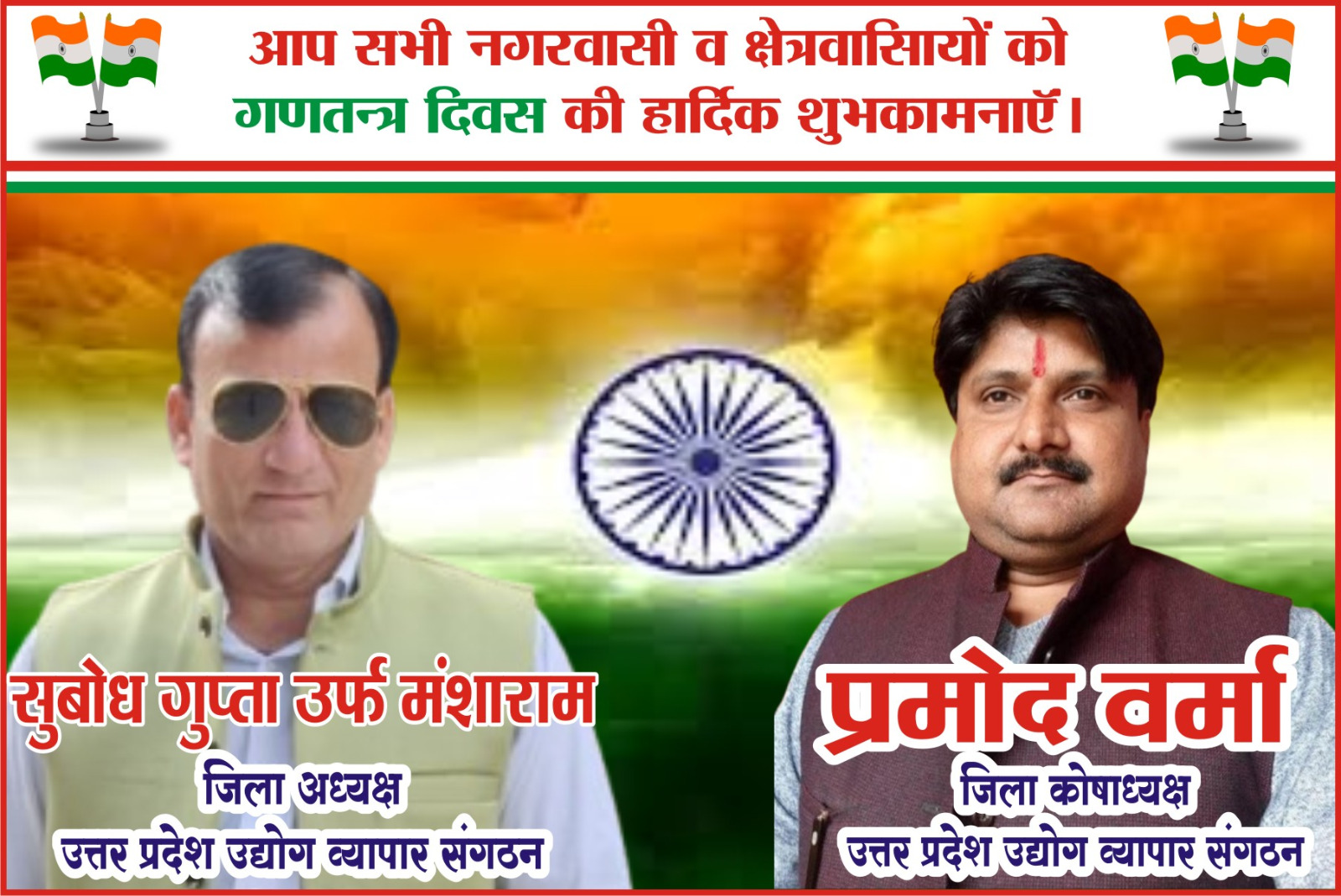 आप सभी नगरवासियों व क्षेत्रवासियों को गणतंत्र दिवस की हार्दिक शुभकामनाएं।