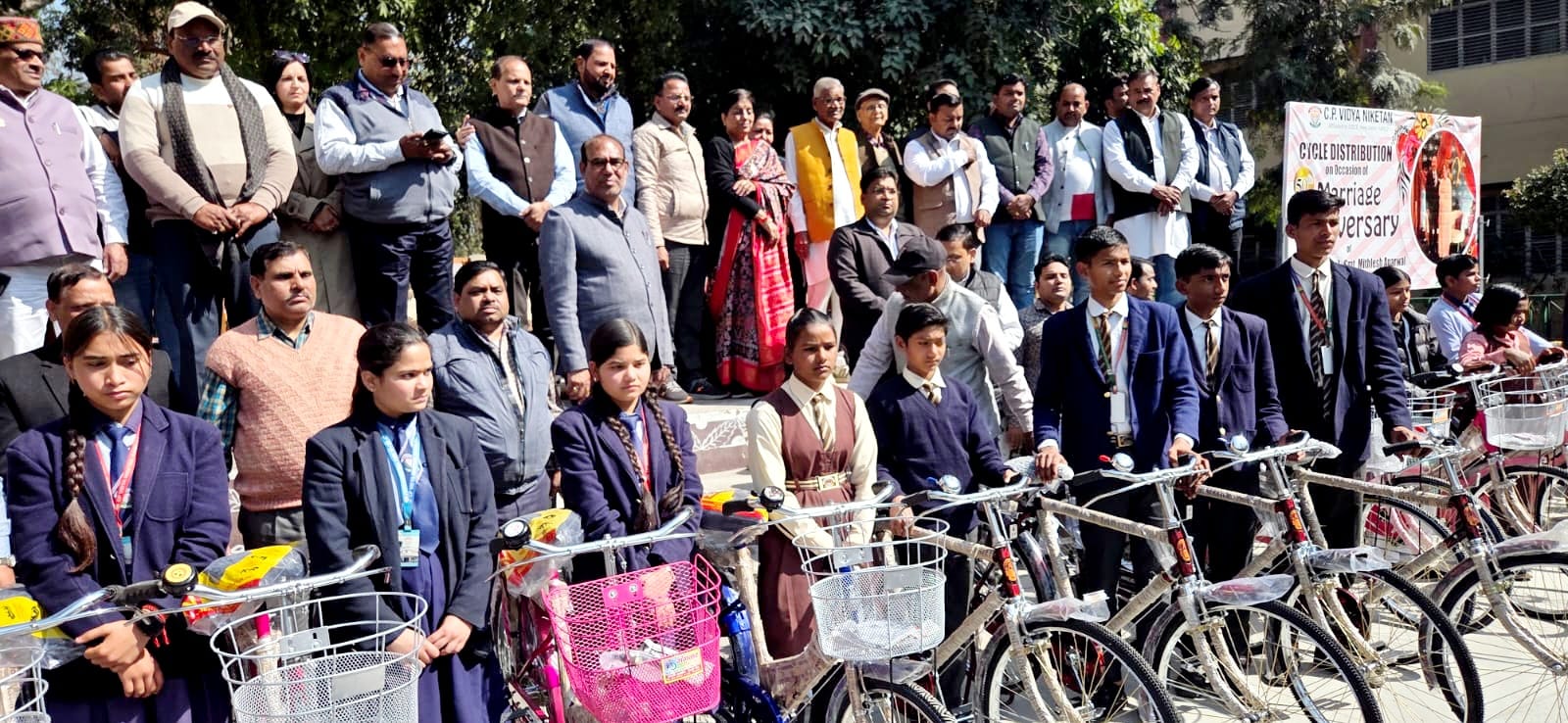 कायमगंज/फर्रुखाबाद:सीपी विद्या निकेतन इंटर कॉलेज परिसर में आयोजित एक विशेष कार्यक्रम के दौरान अंतर्राष्ट्रीय वैश्य महासम्मेलन एवं समर्पण सेवा समिति की ओर से 50 जरूरतमंद छात्राओं को निशुल्क साइकिलें वितरित की गईं।