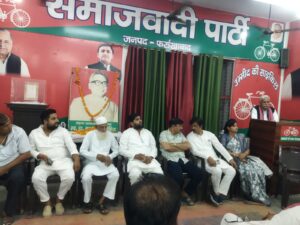 फर्रुखाबाद आज समाजवादी पार्टी फर्रुखाबाद के जिला कार्यालय में समाजवादी लोहिया वाहिनी के नव मनोनीत महानगर अध्यक्ष मंजुल मिश्रा का भव्य स्वागत किया गया, जिलाध्यक्ष श्री चंद्रपाल सिंह यादव, प्रदेश सचिव सर्वेश अम्बेडकर, जिला महासचिव इलियास मंसूरी, जिला उपाध्यक्ष पुष्पेंद्र यादव, डॉ0 रामकृष्ण राजपूत आदि वरिष्ठ नेताओं ने फूल मालाएं पहनाकर स्वागत किया।