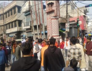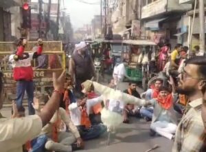 फर्रुखाबाद:चौक बाजार में एक असामान्य घटना देखने को मिली, जहाँ (ABVP) के कार्यकर्ताओं ने भारतीय जनता पार्टी के सदर विधायक मेजर सुनील दत्त द्विवेदी के फोटो लगे पुतले को आग के हवाले कर दिया। चौंकाने वाली बात यह है कि यह पूरा विरोध प्रदर्शन शहर कोतवाली फर्रुखाबाद पुलिस की मौजूदगी में हुआ, जिसके बाद पुलिस की कार्यशैली पर सवाल उठने लगे हैं।