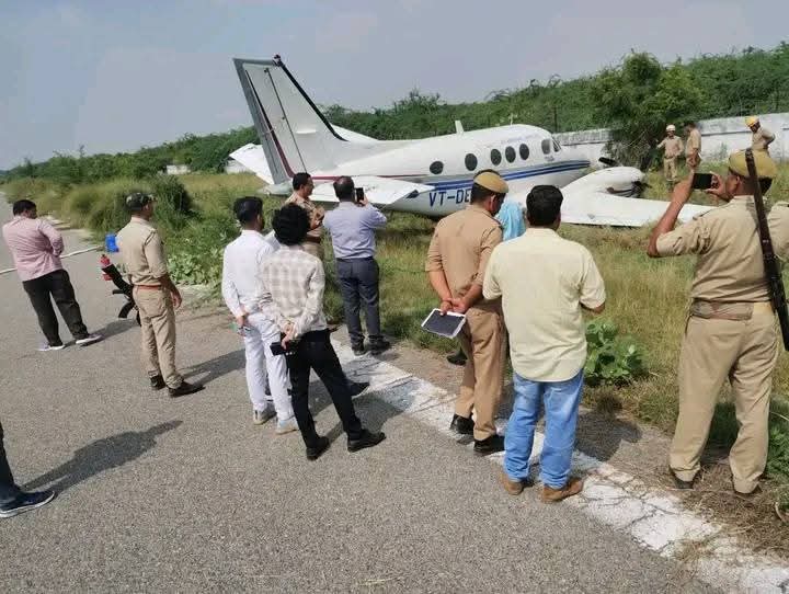 जिसने खिमसेपुर औद्योगिक कार्य क्षेत्र में बन रही वीयर फैक्ट्री के डीएमडी अजय अरोड़ा, एसबीआई हेड सुमित शर्मा, बीपीओ राकेश टीकू फैक्ट्री का निर्माण कार्य का निरीक्षण करने के लिए भोपाल से 3 बजे आए थे, सुबह लगभग 10:30 बजे वह सभी प्लेन में सबार हुए, प्लेन ने जैसे ही उड़ान भरने के लिए रवाना हुआ, उसी दौरान पायलट प्लेन से अपना संतुलन खो बैठा और रनवे से उतर कर झाड़ियों में चला गया।कस्बा मोहम्मदाबाद में स्थित राजकीय हवाई पट्टी पर दिनांक 8 अक्टूबर 2025 को खिमसेपुर औद्योगिक कार्य क्षेत्र में बन रही वीयर फैक्ट्री के डीएमडी अजय अरोड़ा, एसबीआई हेड सुमित शर्मा, बीपीओ राकेश टीकू फैक्ट्री का निर्माण कार्य का निरीक्षण करने के लिए भोपाल से 3:00 बजे आए थे जोकि जेट सर्विस एवियशन प्राइवेट लिमिटेड के प्राइवेट जेट वी टी डेज से सुबह 10:30 भोपाल जाने के लिए रवाना हुए थे जैट को टेक ओवर करते समय अनियंत्रित होकर पास बनी झाड़ियां में जा घुसा।