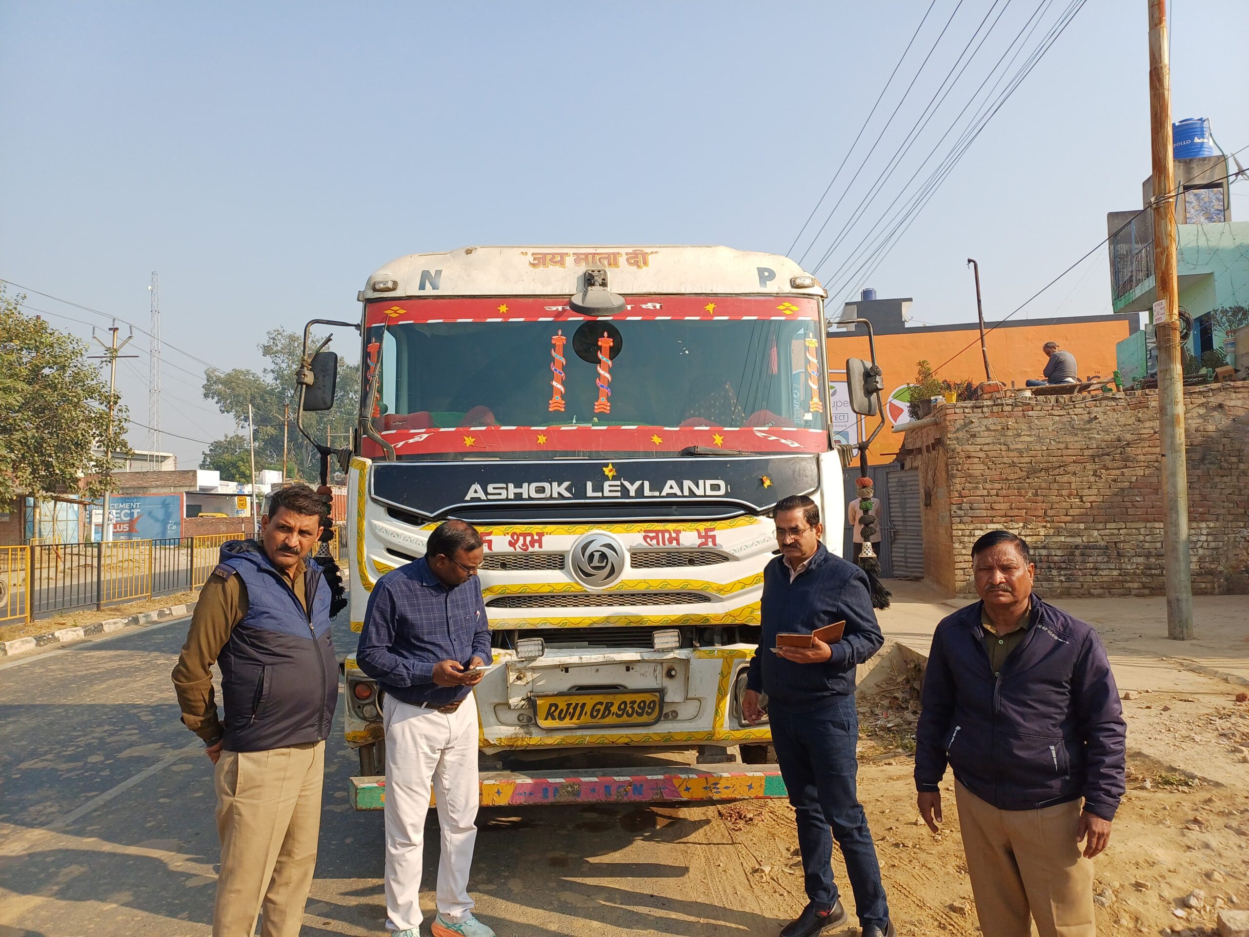 जिलाधिकारी फर्रूखाबाद श्री आशुतोष कुमार द्विवेदी जी के निर्देशन में आज दिनांक 27/11/2025 को एआरटीओ-प्रवर्तन सुभाष राजपूत द्वारा संजय प्रताप, खनन अधिकारी फर्रूखाबाद के साथ खनन सामग्री ढोने वाले वाहनों के विरूद्ध सघन चेकिंग अभियान चलाया गया। चेकिंग के दौरान बिना एचएसआरपी लगाये खनन सामग्री ढोते हुये 2 ट्रक सीज किये गये तथा इन पर रू0 35000 का जुर्माना लगाया गया। जाँच के दौरान पाया गया कि खनन विभाग के पोर्टल पर इनका पंजीकरण नहीं था।